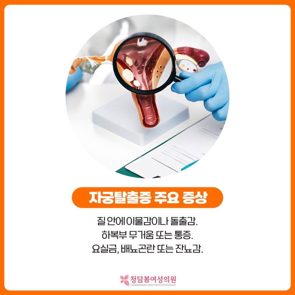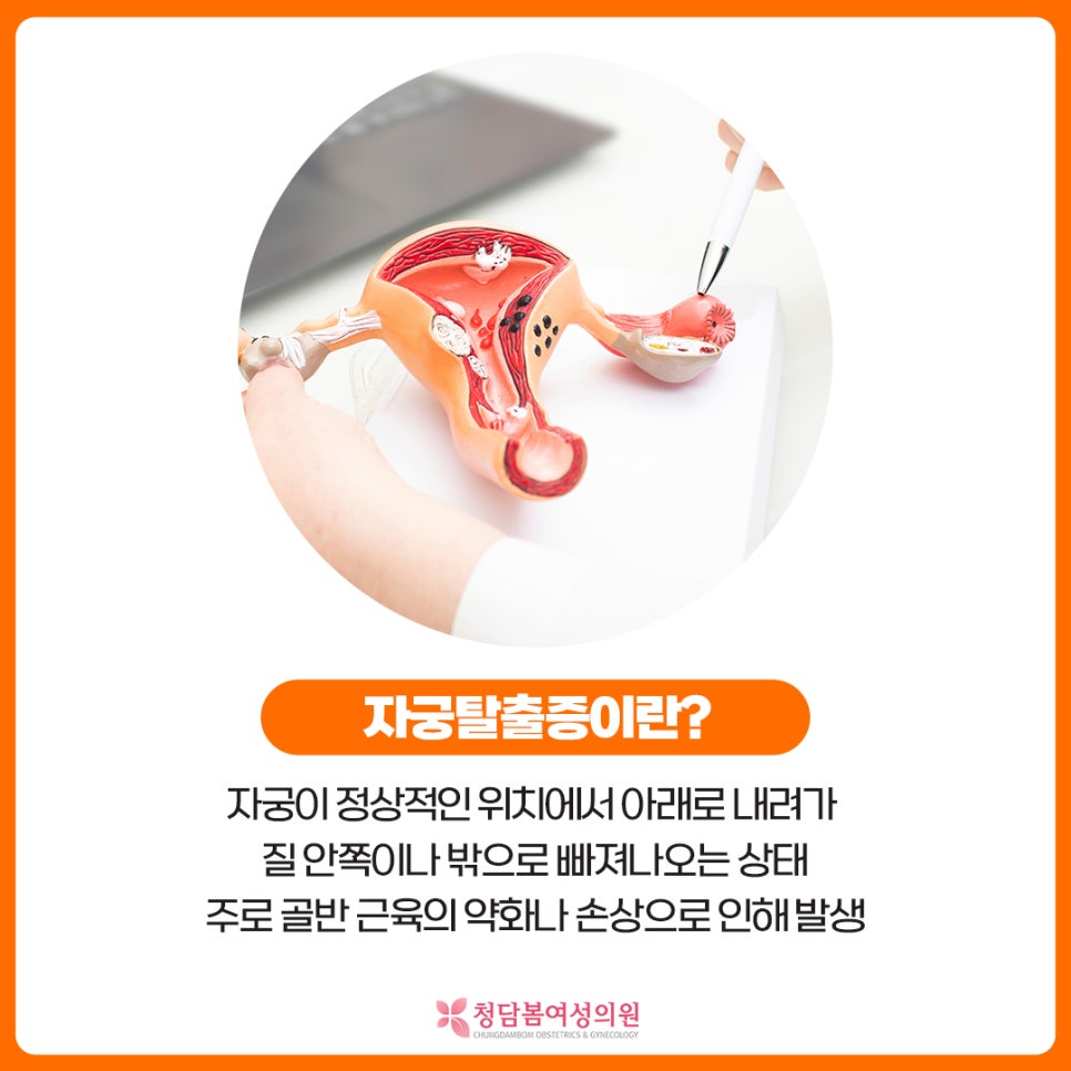 손상으로 자궁이 정상 위치에서 아래로 내려오거나 질 밖으로 돌출된 상태를 말한답니다.